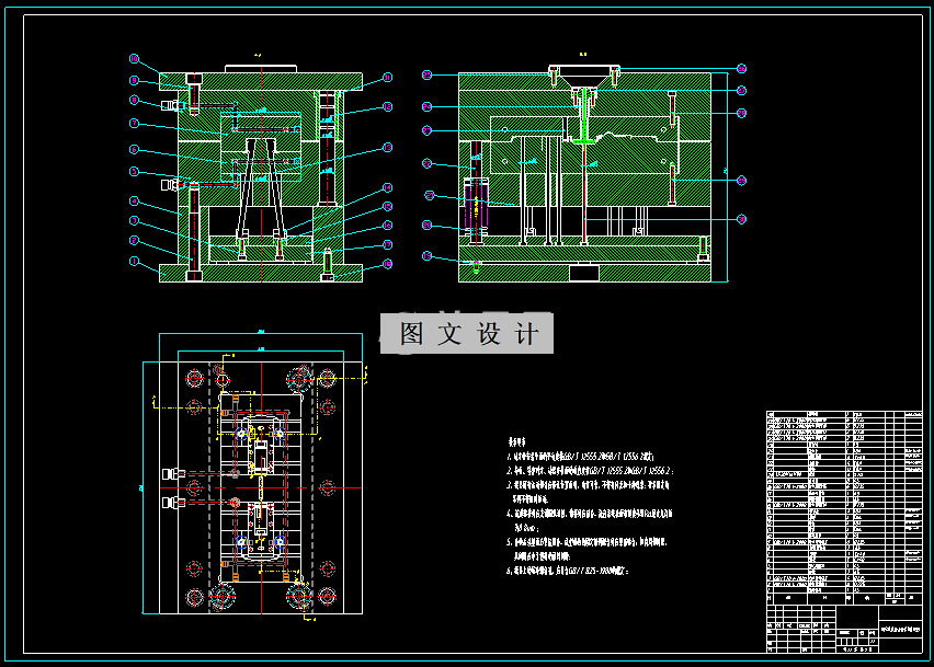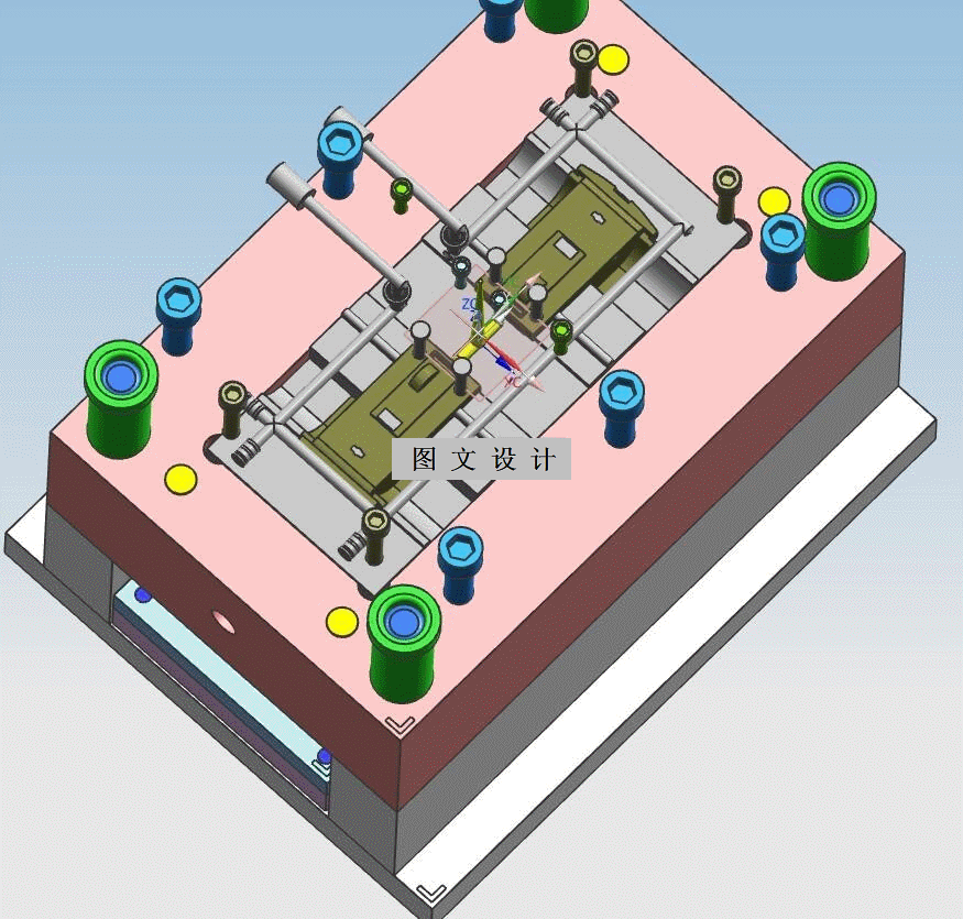 本次设计是为生产儿童玩具车底座设计一副模具,从多个方面进行了研究,其中重点对塑件的工艺和结构这些方面进行了大量的分析,首先分析了产品的工艺性,之后开始着手设计模具的浇注系统、成型的部分和顶出、冷却等方面的设计。在设计完成后结果显示设计可以满足塑件的加工工艺。在设计过程中,我分别采用了UG和CAD两种软件,其中,前者主要是对遥控器上盖进行造型同时帮助我设计得出了塑件的体积和重量,并对结构型式以及浇注系统、推出机构、型芯型腔的结构设计有很大设计帮助。经过一系列的设计,绘制出了模具的三维,最后导出了工程装配图。方案采用一模两腔结构,侧浇口,斜推杆抽芯