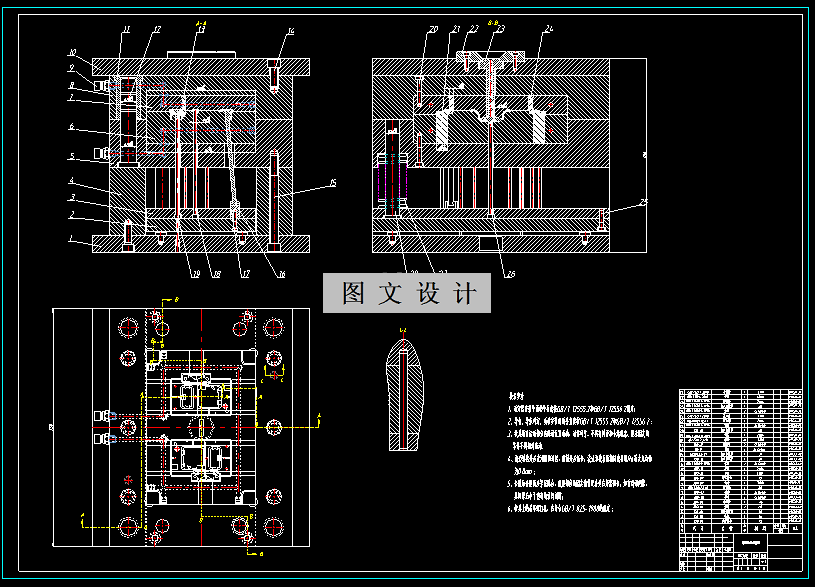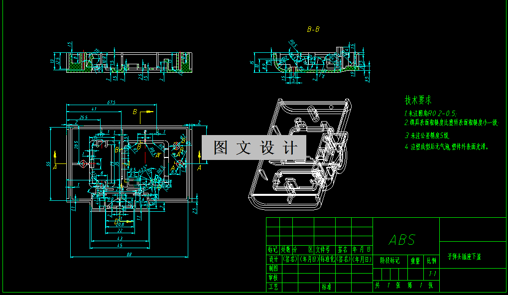 本设计是注塑模具设计为主题。其设计思路由参考多个生产事例而得出,设计内容是从零件的工艺分析开始的,根据工艺要求来确定设计的大体思路。在设计当中,很多东西都是自己原来所没有接触过的,尤其是前段时间所学的理论课知识与现在的自己动手操作设计,设计顺序开始是从零件的材料选择,接下是成型参数、密度、收缩率的确定,模具种类与模具设计的关系、塑件的尺寸精度与结构、注射机的选择、模具设计有关尺寸的计算(包括模具型腔型芯的计算及其公差的确定)、注塑机参数的校核、模具结构设计、模具冷却、加热系统计算、注射模标准件的选用及总装技术要求等内容。 其次是模具的结构,在模具结构的设计当中,首先设计的是模具的型腔结构,接下来是型芯结构、斜导柱、滑块、导向机构、复位杆、拉料杆、推件杆和推出机构,这样做的目的是为了规范化,更重要的是为了以后与制造人员的配合。既让自己有了良好的设计习惯,又能锻炼自己的配合意识。为以后工作做一次演练,这样更能体现理论与实践相结合的目的