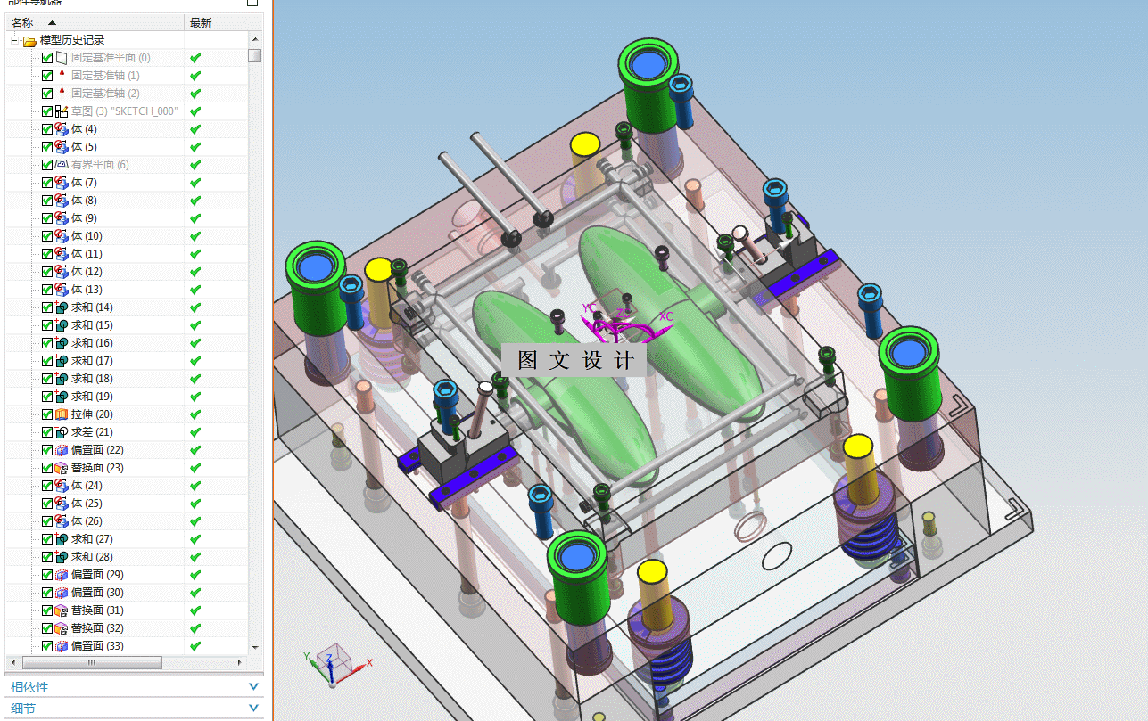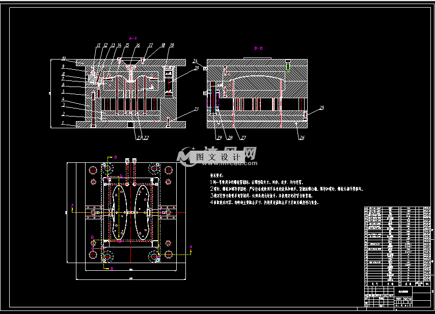 本设计是注塑模具设计为主题。其设计思路由参考多个生产事例而得出,设计内容是从零件的工艺分析开始的,根据工艺要求来确定设计的大体思路。在设计当中,很多东西都是自己原来所没有接触过的,尤其是前段时间所学的理论课知识与现在的自己动手操作设计,设计顺序开始是从零件的材料选择,接下是成型参数、密度、收缩率的确定,模具种类与模具设计的关系、塑件的尺寸精度与结构、注射机的选择、模具设计有关尺寸的计算(包括模具型腔型芯的计算及其公差的确定)、注塑机参数的校核、模具结构设计、模具冷却、加热系统计算、注射模标准件的选用及总装技术要求等内容。 其次是模具的结构,在模具结构的设计当中,首先设计的是模具的型腔结构,接下来是型芯结构、斜导柱、滑块、导向机构、复位杆、拉料杆、推件杆和推出机构,这样做的目的是为了规范化,更重要的是为了以后与制造人员的配合。既让自己有了良好的设计习惯,又能锻炼自己的配合意识。为以后工作做一次演练,这样更能体现理论与实践相结合的目的