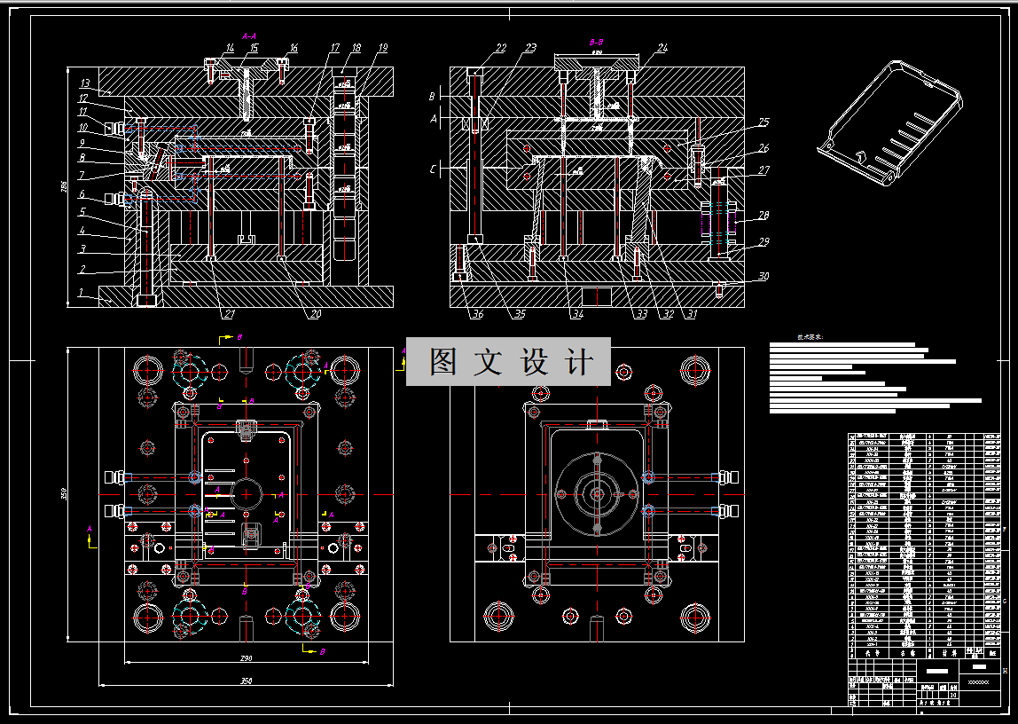 本设计是注塑模具设计为主题。其设计思路由参考多个生产事例而得出,设计内容是从零件的工艺分析开始的,根据工艺要求来确定设计的大体思路。在设计当中,很多东西都是自己原来所没有接触过的,尤其是前段时间所学的理论课知识与现在的自己动手操作设计,设计顺序开始是从零件的材料选择,接下是成型参数、密度、收缩率的确定,模具种类与模具设计的关系、塑件的尺寸精度与结构、注射机的选择、模具设计有关尺寸的计算(包括模具型腔型芯的计算及其公差的确定)、注塑机参数的校核、模具结构设计、模具冷却、加热系统计算、注射模标准件的选用及总装技术要求等内容。 其次是模具的结构,在模具结构的设计当中,首先设计的是模具的型腔结构,接下来是型芯结构、斜导柱、滑块、导向机构、复位杆、拉料杆、推件杆和推出机构,这样做的目的是为了规范化,更重要的是为了以后与制造人员的配合。既让自己有了良好的设计习惯,又能锻炼自己的配合意识。为以后工作做一次演练,这样更能体现理论与实践相结合的目的