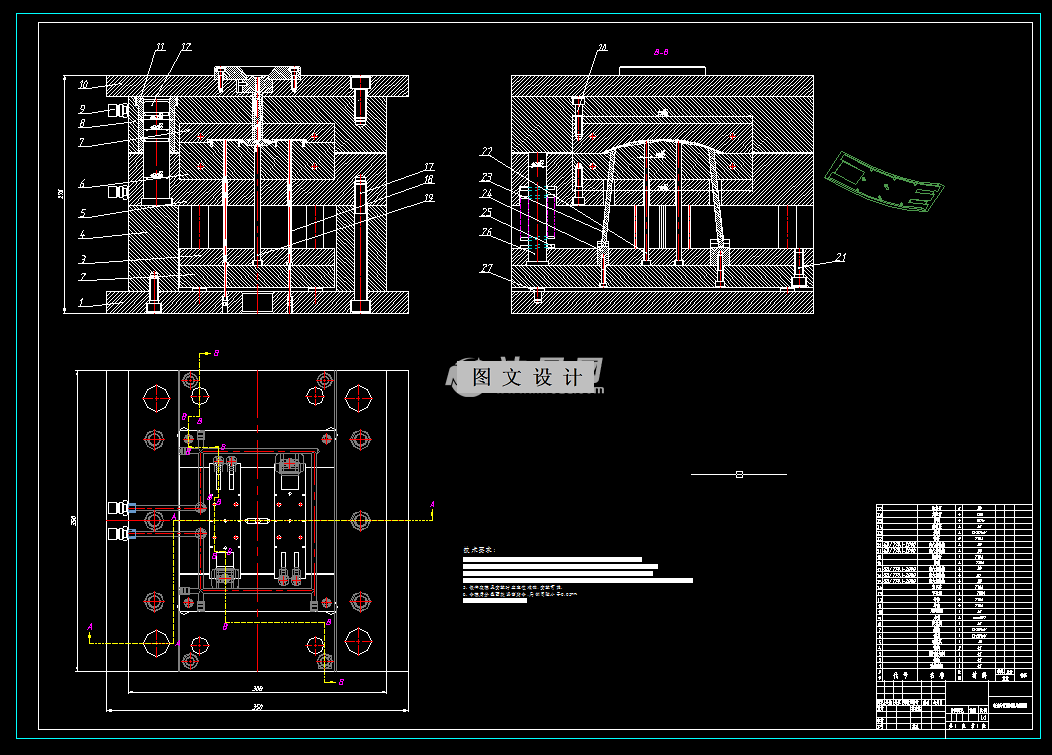 本设计是注塑模具设计为主题。其设计思路由参考多个生产事例而得出,设计内容是从零件的工艺分析开始的,根据工艺要求来确定设计的大体思路。在设计当中,很多东西都是自己原来所没有接触过的,尤其是前段时间所学的理论课知识与现在的自己动手操作设计,设计顺序开始是从零件的材料选择,接下是成型参数、密度、收缩率的确定,模具种类与模具设计的关系、塑件的尺寸精度与结构、注射机的选择、模具设计有关尺寸的计算(包括模具型腔型芯的计算及其公差的确定)、注塑机参数的校核、模具结构设计、模具冷却、加热系统计算、注射模标准件的选用及总装技术要求等内容。 其次是模具的结构,在模具结构的设计当中,首先设计的是模具的型腔结构,接下来是型芯结构、斜导柱、滑块、导向机构、复位杆、拉料杆、推件杆和推出机构,这样做的目的是为了规范化,更重要的是为了以后与制造人员的配合。既让自己有了良好的设计习惯,又能锻炼自己的配合意识。为以后工作做一次演练,这样更能体现理论与实践相结合的目的 918372