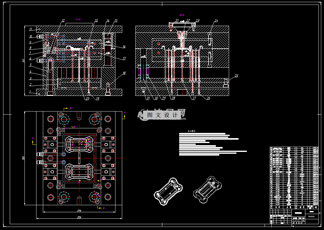 本设计是注塑模具设计为主题。其设计思路由参考多个生产事例而得出,设计内容是从零件的工艺分析开始的,根据工艺要求来确定设计的大体思路。在设计当中,很多东西都是自己原来所没有接触过的,尤其是前段时间所学的理论课知识与现在的自己动手操作设计,设计顺序开始是从零件的材料选择,接下是成型参数、密度、收缩率的确定,模具种类与模具设计的关系、塑件的尺寸精度与结构、注射机的选择、模具设计有关尺寸的计算(包括模具型腔型芯的计算及其公差的确定)、注塑机参数的校核、模具结构设计、模具冷却、加热系统计算、注射模标准件的选用及总装技术要求等内容。 其次是模具的结构,在模具结构的设计当中,首先设计的是模具的型腔结构,接下来是型芯结构、斜导柱、滑块、导向机构、复位杆、拉料杆、推件杆和推出机构,这样做的目的是为了规范化,更重要的是为了以后与制造人员的配合。既让自己有了良好的设计习惯,又能锻炼自己的配合意识。为以后工作做一次演练,这样更能体现理论与实践相结合的目的