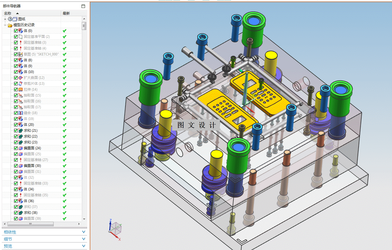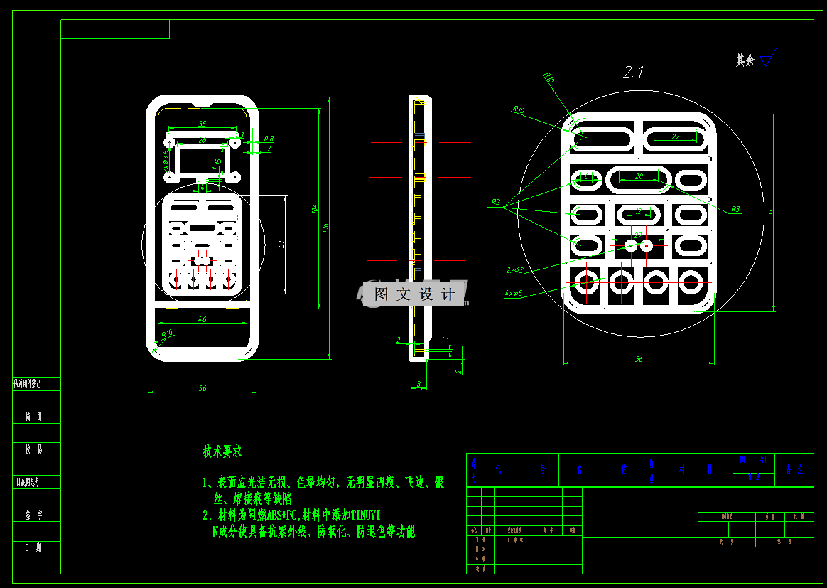 本设计是注塑模具设计为主题。其设计思路由参考多个生产事例而得出,设计内容是从零件的工艺分析开始的,根据工艺要求来确定设计的大体思路。在设计当中,很多东西都是自己原来所没有接触过的,尤其是前段时间所学的理论课知识与现在的自己动手操作设计,设计顺序开始是从零件的材料选择,接下是成型参数、密度、收缩率的确定,模具种类与模具设计的关系、塑件的尺寸精度与结构、注射机的选择、模具设计有关尺寸的计算(包括模具型腔型芯的计算及其公差的确定)、注塑机参数的校核、模具结构设计、模具冷却、加热系统计算、注射模标准件的选用及总装技术要求等内容。 其次是模具的结构,在模具结构的设计当中,首先设计的是模具的型腔结构,接下来是型芯结构、斜导柱、滑块、导向机构、复位杆、拉料杆、推件杆和推出机构,这样做的目的是为了规范化,更重要的是为了以后与制造人员的配合。既让自己有了良好的设计习惯,又能锻炼自己的配合意识。为以后工作做一次演练,这样更能体现理论与实践相结合的目的
