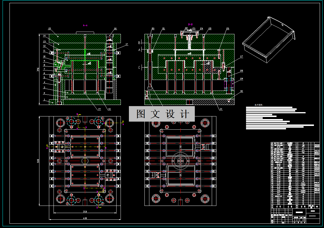 本设计是以“迪福A6收纳柜抽屉注塑模具设计”为主题。其设计思路由参考多个生产事例而得出,设计内容是从零件的工艺分析开始的,根据工艺要求来确定设计的大体思路。在设计当中,很多东西都是自己原来所没有接触过的,尤其是前段时间所学的理论课知识与现在的自己动手操作设计,设计顺序开始是从零件的材料选择,接下是成型参数、密度、收缩率的确定,模具种类与模具设计的关系、塑件的尺寸精度与结构、注射机的选择、模具设计有关尺寸的计算(包括模具型腔型芯的计算及其公差的确定)、注塑机参数的校核、模具结构设计、模具冷却、加热系统计算、注射模标准件的选用及总装技术要求等内容。 其次是模具的结构,在模具结构的设计当中,首先设计的是模具的型腔结构,接下来是型芯结构、斜导柱、滑块、导向机构、复位杆、拉料杆、推件杆和推出机构,这样做的目的是为了规范化,更重要的是为了以后与制造人员的配合。既让自己有了良好的设计习惯,又能锻炼自己的配合意识。为以后工作做一次演练,这样更能体现理论与实践相结合的目的