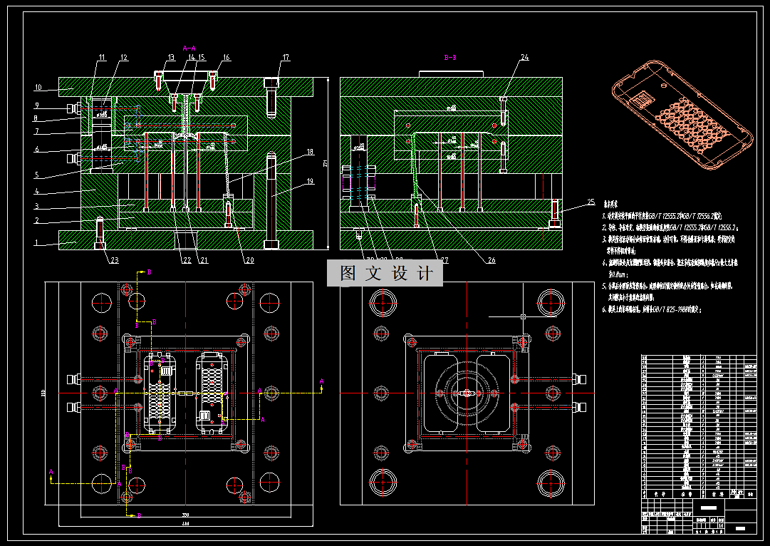 本设计是以“手机后盖注塑模具设计”为主题。其设计思路由参考多个生产事例而得出,设计内容是从零件的工艺分析开始的,根据工艺要求来确定设计的大体思路。在设计当中,很多东西都是自己原来所没有接触过的,尤其是前段时间所学的理论课知识与现在的自己动手操作设计,设计顺序开始是从零件的材料选择,接下是成型参数、密度、收缩率的确定,模具种类与模具设计的关系、塑件的尺寸精度与结构、注射机的选择、模具设计有关尺寸的计算(包括模具型腔型芯的计算及其公差的确定)、注塑机参数的校核、模具结构设计、模具冷却、加热系统计算、注射模标准件的选用及总装技术要求等内容。 其次是模具的结构,在模具结构的设计当中,首先设计的是模具的型腔结构,接下来是型芯结构、斜导柱、滑块、导向机构、复位杆、拉料杆、推件杆和推出机构,这样做的目的是为了规范化,更重要的是为了以后与制造人员的配合。既让自己有了良好的设计习惯,又能锻炼自己的配合意识。为以后工作做一次演练,这样更能体现理论与实践相结合的目的918349