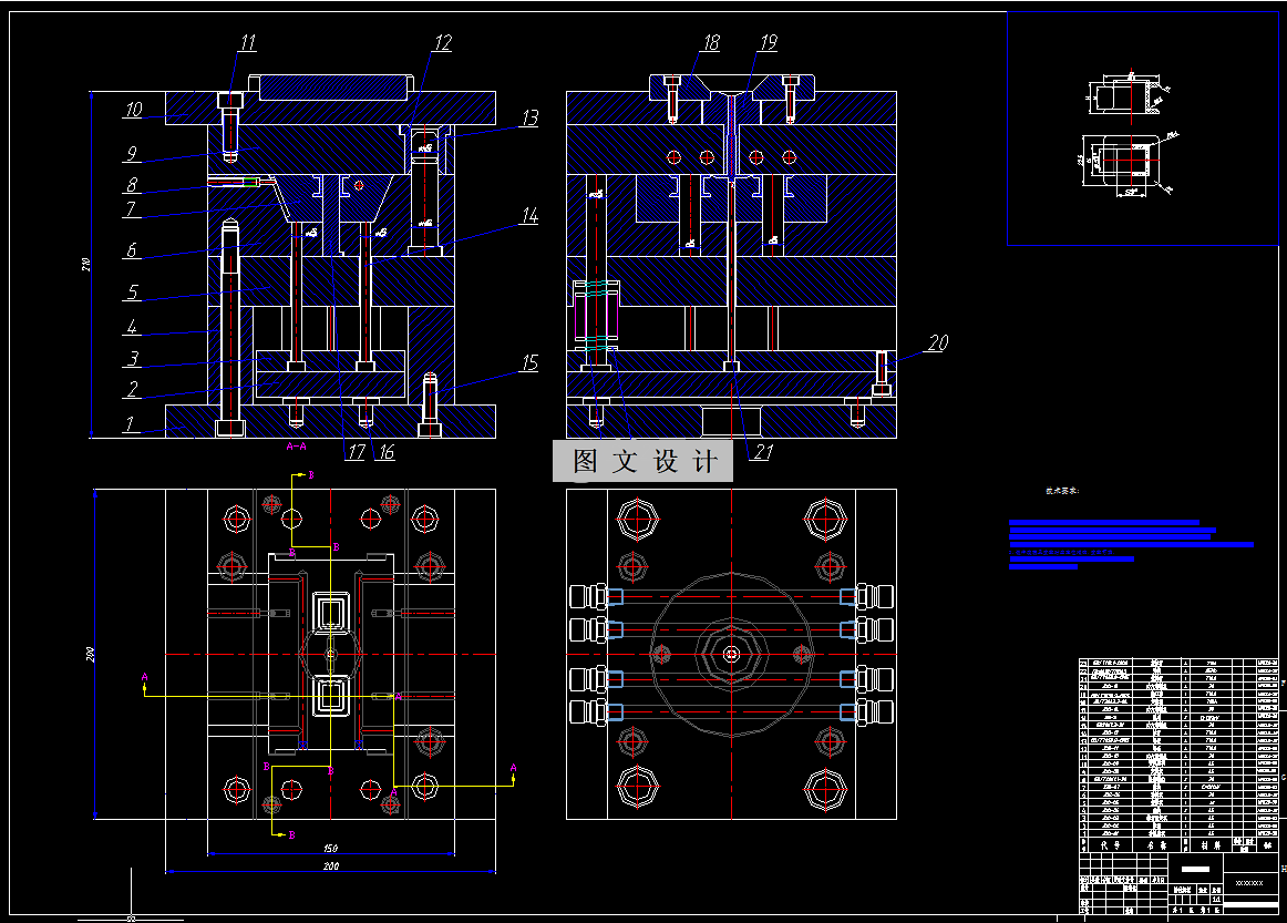 本设计是以“方形骨架注塑塑料模具设计”为主题。其设计思路由参考多个生产事例而得出,设计内容是从零件的工艺分析开始的,根据工艺要求来确定设计的大体思路。在设计当中,很多东西都是自己原来所没有接触过的,尤其是前段时间所学的理论课知识与现在的自己动手操作设计,设计顺序开始是从零件的材料选择,接下是成型参数、密度、收缩率的确定,模具种类与模具设计的关系、塑件的尺寸精度与结构、注射机的选择、模具设计有关尺寸的计算(包括模具型腔型芯的计算及其公差的确定)、注塑机参数的校核、模具结构设计、模具冷却、加热系统计算、注射模标准件的选用及总装技术要求等内容。 其次是模具的结构,在模具结构的设计当中,首先设计的是模具的型腔结构,接下来是型芯结构、斜导柱、滑块、导向机构、复位杆、拉料杆、推件杆和推出机构,这样做的目的是为了规范化,更重要的是为了以后与制造人员的配合。既让自己有了良好的设计习惯,又能锻炼自己的配合意识。为以后工作做一次演练,这样更能体现理论与实践相结合的目的。