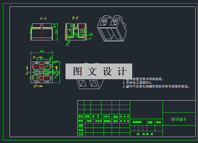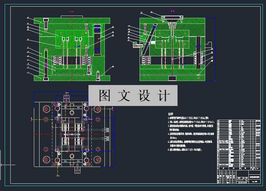 本设计采用CAD、软件,进行了塑料模具设计,根据注射模设计,分型面选择在大断面处,进行了浇注系统设计,成型后,塑件成型的产品放在注塑机上。设计需要计算塑件的尺寸,确定尺寸精度,然后注射机的选择。检查注塑机参数包括厚度,模具安装尺寸,模具闭模行程,注塑机锁模力等参数,所有符合要求在确定注射机的类型。在设计过程中,为了更清晰地表达模具的内部结构,所以有很多的模具结构和模具的局部图,并绘制二维图。