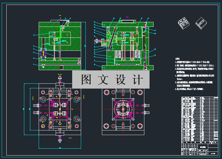 接线端子就是配电柜中大量用到的电气连接件,第2章完成结构分析及其H2519接线端子的选材,决定采用一模4腔,侧浇口,大水口两板模具。在开始进行模具结构设计之前运用三维绘图软件和AUTOCAD二维绘图软件对H2519接线端子三维立体图及产品零件图进行绘制,从H2519接线端子产品的成型结构特征开始、到对分型面分析及位置的选择、模具浇注系统设计、型芯型腔结构设计和尺寸计算,脱模推出机构、冷却系统、导向机构的设计等多方面详细叙述了H2519接线端子注射模大致设计过程。与此同时合理地选用了注塑机型号,而且对注塑机压力,锁模力及顶出力等工艺参数进行详细校核,进而保证了设计的合理性及正规性。如此设计出的注射模结构才能确保模具工作运行可靠。