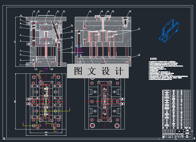 本次设计模具方案型腔个数为一模两腔,进料通过侧浇口完成,注射所用设备为海天牌,确定型号为HTF86TJ,然后为注塑模具设计的浇注系统、脱模机构、侧向抽芯机构、温度调节系统、排气系统等。其中,浇注系统中包括有主流道、分流道、、浇口等以及冷料穴等,脱模主要通过推杆推出接线端子连接器来实现,设计了斜导柱+滑块作为本次设计的侧向抽芯机构装置。成型零部件部分的设计选择了整体式型芯、型腔并做出了相应尺寸的计算、通过文字,图纸与相关计算来对模具结构进行设计与计算,这样设计出符合要求的模具。