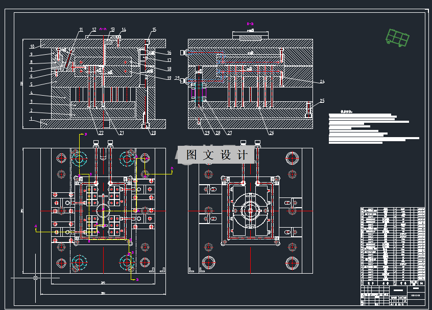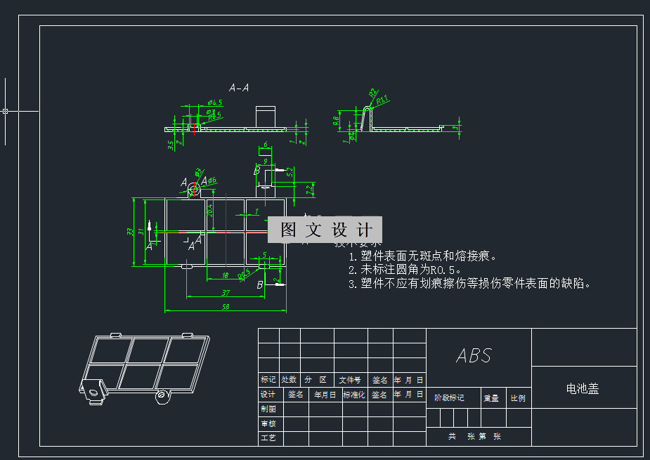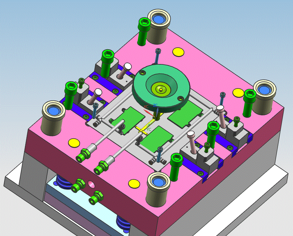 通过分析它的外部结构形状结构和尺寸大小以及精度来拟定合理的模具设计方案,并对产品的塑料原材料进行选择并作出主要性能分析,产品体积通过三维软件分析获得,并初选了注塑机型号为XS-ZY-125。本次设计分型面位置进在了产品底面最大轮廓面面积处,型腔数目决定采用一模四腔结构,型腔排布采用H型排布,在浇口类型上选择了侧浇口类型,在制品的脱模机构上我们采用推杆推出儿童玩具后盖的方式来推出产品。由于产品存在侧孔结构,需要设计抽芯机构成型,最后经过分析,认为此次的塑料模具设计还需要设计一套模具冷却系统,这样能够提高产品的成型质量。最后对注塑机主要参数进行了校核。