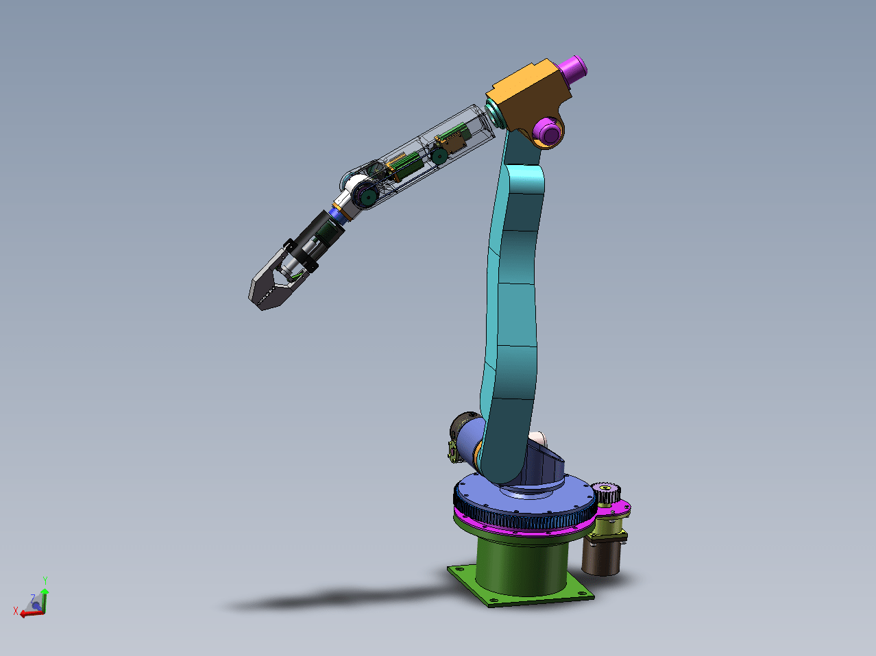 因此本课题的研究目的是通过对快递分拣机器人的结构设计与性能优化,并且在设计中采用计算机辅助设计工具来完成整个设计过程的实施,重点从底座旋转机构、大臂俯仰机构、小臂旋转机构、夹爪夹紧这几种机构上开展工作,完成设计计算与详细的结构设计,提供了新的解决方案,来满足快递分拣机器人生产应用过程中的使用需求。