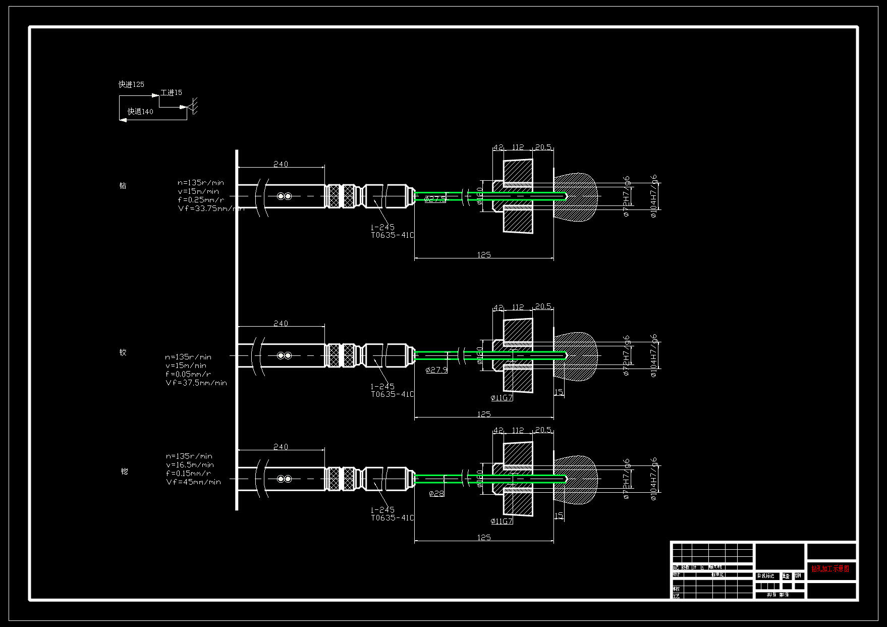 组合机床总体设计:零件工序图、加工示意图、联系尺寸图和生产率计算卡设计,完成三图(工序卡、加工示意图、尺寸联系图)一卡(生产率计算卡)。