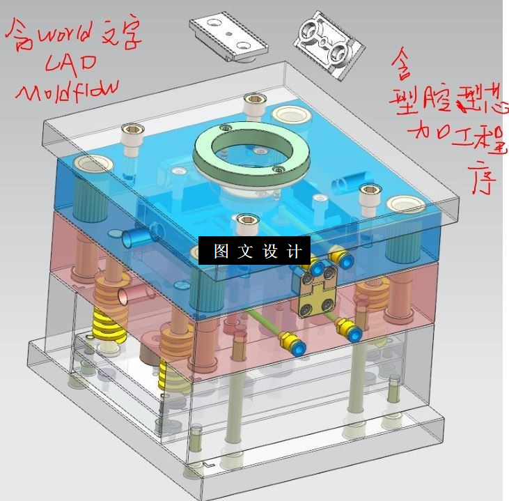本作品设计的是一个POM塑件的模具,该塑件主要的功能作用是给产品容易锁螺丝变形或者锁螺丝掉漆等的位置垫上胶套,再锁上两个平头螺丝,保护产品的外观(截图里给了示范)。本作品研究了POM注塑件和PC、ABS塑件的特性不同点,做了moldflow流道分析,原档已有,还出了部分零件的二维图和模具总装图。型芯和型腔已经编了加工程序。POM密度为1.41-1.43g/cm3,收缩率2~3.5%,抗拉伸强度好,耐疲劳,韧性好,高硬度、强度,弹性好。1171234
