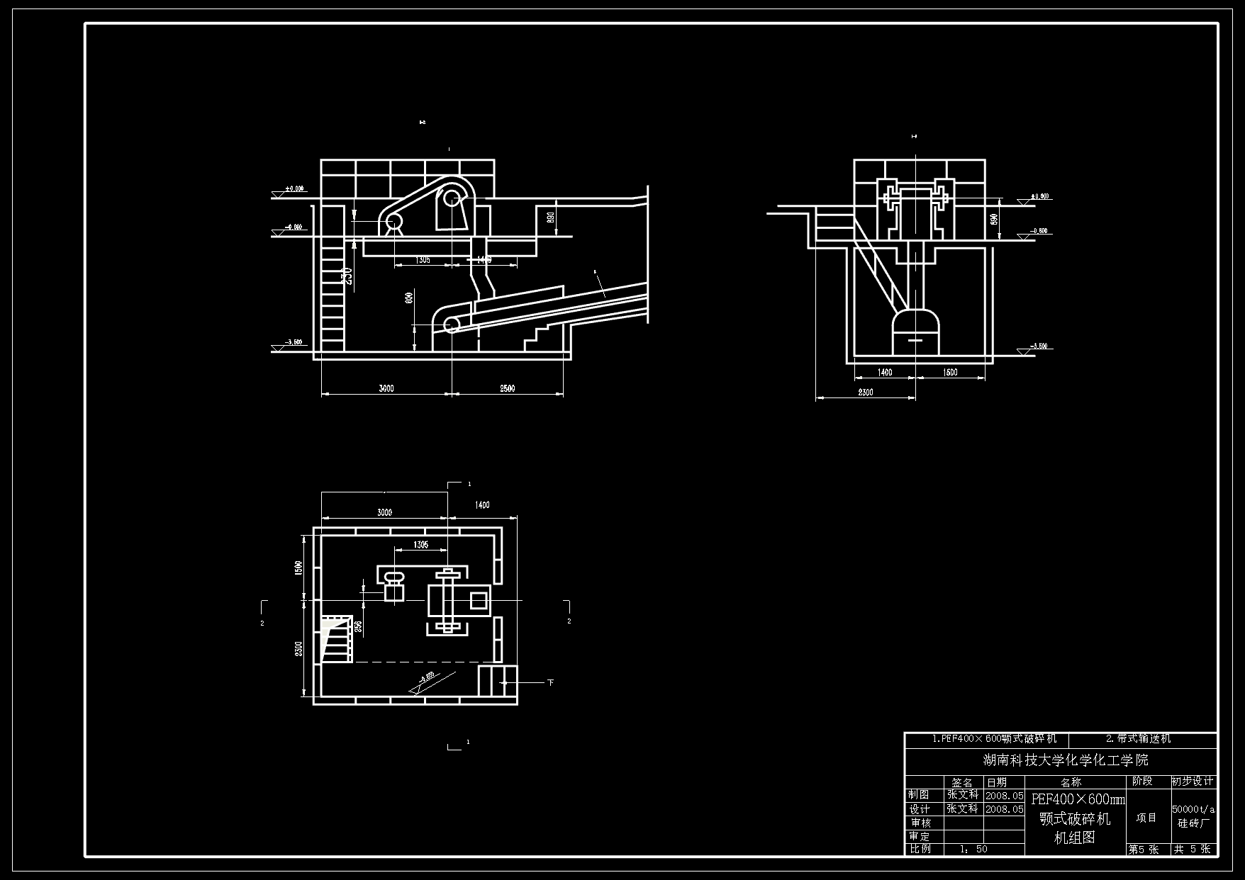 50000t-a硅砖生产线初步工艺设计 本设计是关于50000t/a硅砖生产线(原料破碎、成型车间、成品仓库)的初步工艺设计。本人查阅了有关耐火材料生产工艺设计资料后,对50000t/a硅砖生产线的生产工艺流程进行了论证,对物料平衡进行了计算,对各车间的主要设备进行了选型和平衡计算,并对环境保护作了简要论述,对技术经济进行了初步评价;确定了各个车间的主要设备,即PEF400mm×600mm颚式破碎机2台,PEF250mm×400mm颚式破碎机3台,Ф1200mm短头圆锥破碎机3台,Ф750mm×500mm双辊破碎机3台,Ф1500mm×5700mm管磨机2台,Ф1600mm×450mm湿碾机8台,摩擦压砖机32台,隧道干燥器19条,干燥室1个,隧道窑2个,倒焰窑4个;绘制了6张图纸。