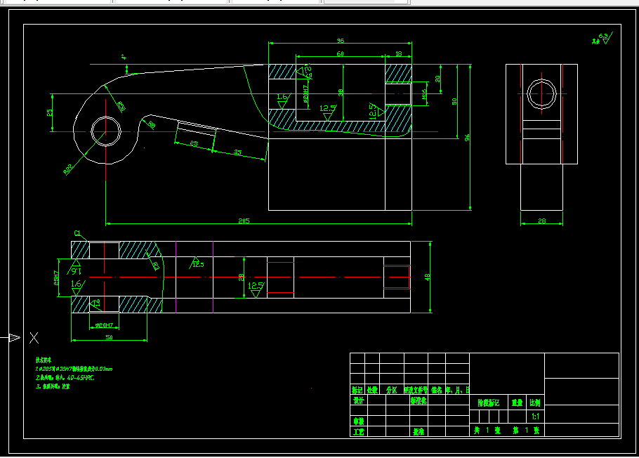 图纸中包括车内球面工具本体零件φ20h7孔加工夹具设计图, 本体零件图,夹具底座图,专用夹具图,毛配合图,和ug三维视图。夹具技术要求时 :零件在装配前必须清理和清洗干净,不允许有毛刺,飞边,氧化皮,油污,和灰尘。.装配过程中零件不允许磕碰,划伤和锈蚀。