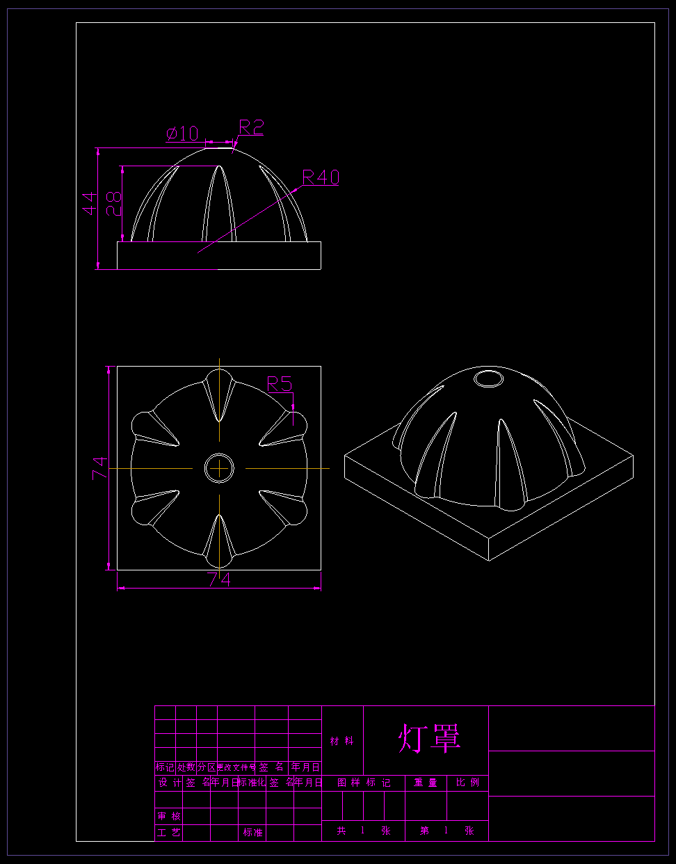 台灯罩的型芯进行三维造型;运用国产的斯沃数控仿真系统对三维造型的台灯罩的型芯进行数控仿真加工;通过学校数控实训基地里的加工中心对材料为石蜡的毛坯进行实体加工。本次设计的重点主要有三点:第一点:台灯罩的型芯三维设计中的曲面造型,之所以将曲面造型列为重点,是因为3D曲面建模的精确描述和灵活操作能力已经是评定三维CAD辅助设计功能是否强大的重要标志;第二点:是怎样建立好完整的刀具加工路径,好的刀具加工路径,不仅仅是加工质量上的提高,还包含着加工效率的提高;第三点:是怎样将理论设计和实际加工比较完美的结合起来。