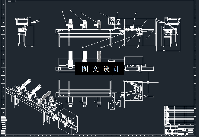 一次性餐具自动包装机图纸包含设备的三维建模,二维装配图、零件图等。论文的整体描述分为两个部分,分别是设计部分还有整个的生产制造的过程。在对设计过程描述的时候,不仅仅详细描述了整个设计的的总体的结构,还分别细化的描述了各个部分结构的的系统设计。分别是传动系统的结构设计,控制系统的结构设计和安全防护系统的结构设计。分别深入,细致的进行了理论分析,还进行了一系列的计算。并且还针对实地进行了实际测量,就能更好的分析设计结构参数。第二个部分,生产制造的部分,这个部分详细介绍了本次课题所涉及的题目里面的创新的部分,以及,在加工工艺上面的创造性。