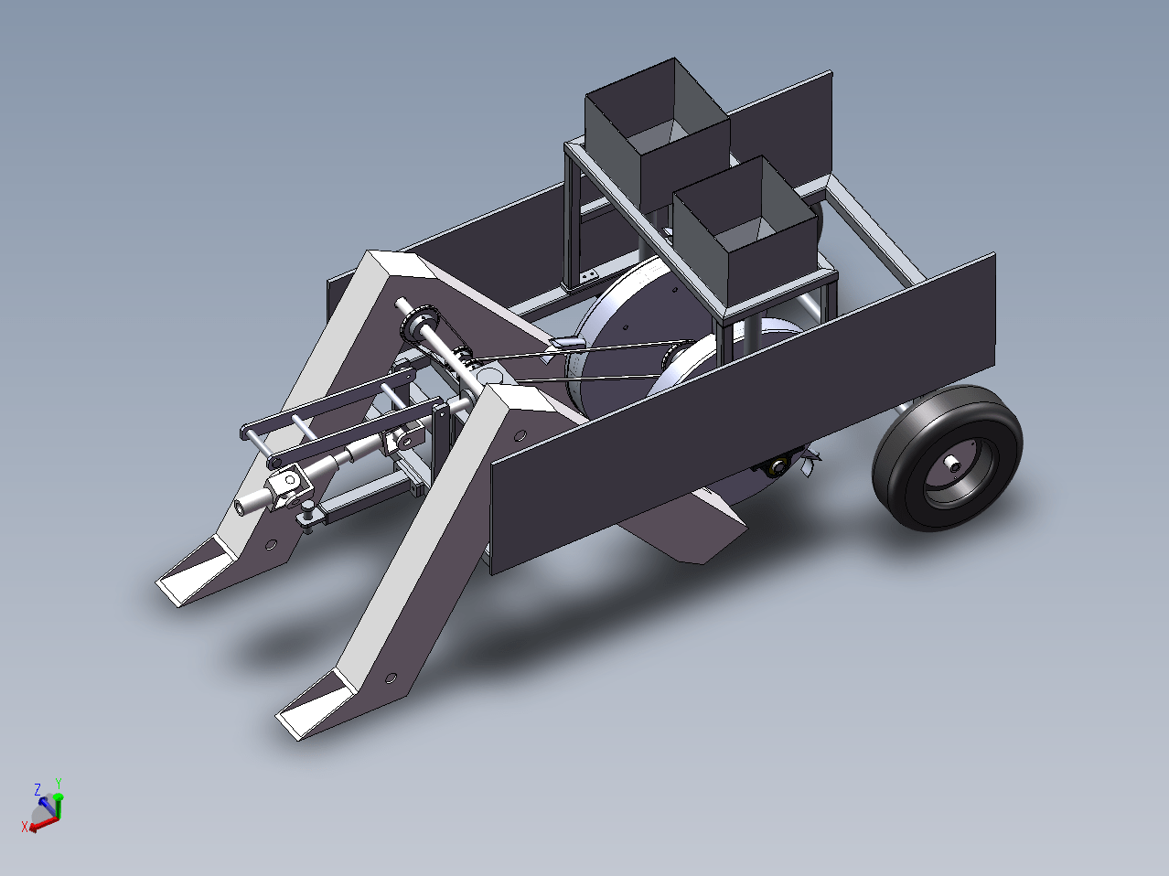 现在马铃薯旱地覆膜栽培种植技术方式一般分为两种,一是先播种后覆膜,二是覆膜后破膜种植。分析这两种种植方式,前者种植工序较多,而且在马铃薯种苗发芽后需要人工将膜破开,让小苗探出膜外。后者则是先破后种,能够很好的保存土壤里的水分,而且可以防止烧苗现象,这种方法更受农民欢迎,但也有一些缺点,如在膜上挖洞、播种后覆土等。现在大部分工作都是手工操作,依赖人工种植导致工作强度大,机械化种植难以推广。为解决这一问题,提高种植效率,设计了一款能够在膜上打穴进行播种后自动覆土的马铃薯播种机,设计了在打穴、播种的基础上实现自动覆土。本设计的优点在于能够减少播种时间、提高播种效率,实现了农耕机械自动化的这一目标,减少人工劳作。对干旱地区马铃薯的种植起到了一定的促进作用,能够实实在在的为农民提高收获,解放劳动力。
