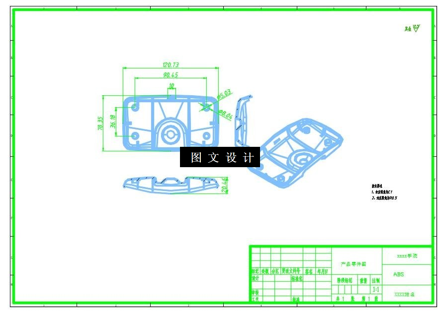 本文是外壳注塑模具设计的详细过程,包括分析,说明,与计算过程,说明书四部分组成,组要阐述了此模具设计的全过程。包括塑件的工艺性能分析、注塑成型模具设计、模具与注塑机的关系、注塑模成型零部件设计与计算、模具成型零件的设计与计算、试模与模具的维修等。