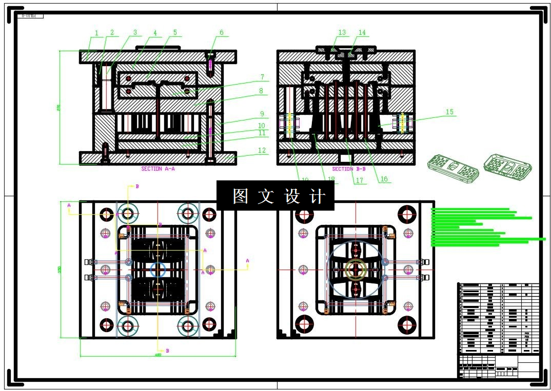 遥控器外壳都属于塑料的制品,属于我们模具设计课程的设计范围,所以本次的课题设计就是来围绕遥控器的外壳注塑成型展开的,在此模具设计论文中,将遥控器的外壳注塑成型的整个设计过程进行了详细的阐述,在这个模具的设计过程中,根据塑料的制品的外观,塑件的用途,塑件的工艺性,尺寸的要求还有尺寸的精度要求制定了严谨的设计路线,其中包括了这几个模块,它们是设计模具的背景以及工艺的分析,选择适用的注射机还有工艺参数,成型零部件还有冷却系统,脱模机构,浇注系统的设计还有一些总结式的分析。