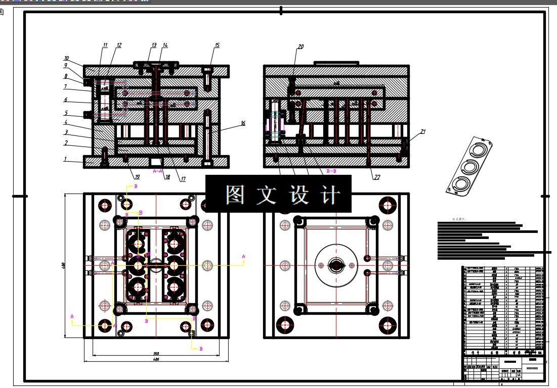 本次研究的对象是料板模具注射成型过程。通过分析实物塑件,可以精确的绘制出它的二维和三维图。根据材料特性,塑件的几何特征确定了分型面。查阅相关专业书籍,设计出浇注系统,脱模机构和侧抽芯机构,并对成型零件中的定模型腔,动模型芯进行了设计,加热和冷却等进行了计算,最后对注塑机进行校核。