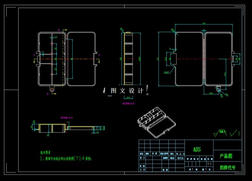 本次设计的是储物盒注塑模具,这种刀架是比较常见的,为家庭和办公的必备的工具。分析刀架的使用需求和工艺性能要求,选取ABS材料,并且需要确定模具结构,对分型面做出选取和型腔的排布确定,合理选取注射机设备,以及对注射机的参数校核,成型零件的尺寸计算,同时还要完成浇注系统设计,冷却系统的设计等任务,并且完成注塑模具的装配图和零件图,说明书的写作要求等。