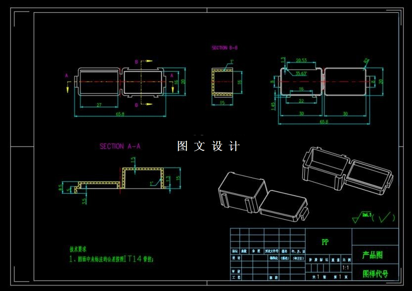 本次设计是关于便携式药盒注塑模具,瓶盖是比较常见的盖子,用于生活当中,设计任务主要是分析盖子的外形特征以及工艺要求,合理选用材料的种类,对产品进行造型设计,选定型腔布置以及浇口种类,最终确定模具结构,以及对成型零件的计算,注射机的选用等,并且完成图纸和说明书的任务要求。