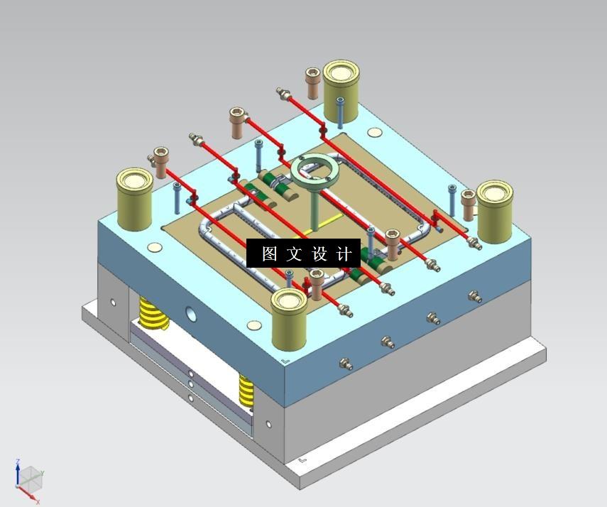 该制件属于打批量生产,所以采用了一模两腔设计,凹凸模开设在定模板和中间板之间.采用普通浇注系统点浇口的形式.根据估算制件和浇注系统凝料的重量.选用HTF360J/TJ型注射机,.分型面设在定模板和中间板之间,分型时利用拉料杆将凝料一同拉出,再用推杆和拉料杆一同将制件和凝料顶出.根据制件的精度要求和尺寸大少算出型腔和型芯的尺寸公差,再根据强度条件取壁厚5mm.由此画出各模板和零件图,最后画出装配图并校核各参数,校核无误才能使用.