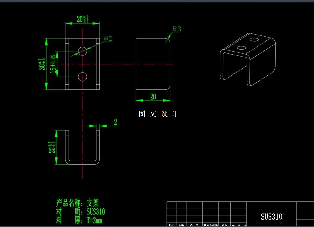 本文介绍的是弯板支架冲孔弯曲级进模,该模具实例结构简单实用,使用方便可靠。首先根据工件图算工件的展开尺寸,再根据展开尺寸算该零件的压力中心,材料利用率,画排样图;其次依据凸、凹模不同的制造方法和冲裁工艺方案计算出凸、凹模的刃口尺寸;计算冲压力,选择冲压设备;根据零件的几何形状要求和尺寸的分析,进行凸、凹模结构设计,最后总体设计。