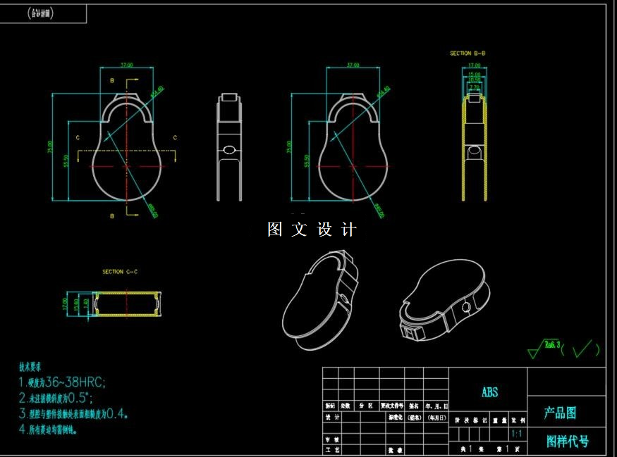 本次设计的产品为修正带外壳,具有重量轻,强度高,耐腐蚀,易清洁等 特点,为大批量生产产品。本次设计在针对产品进行工艺性分析后,确定模具分 型面、 型腔数目、 浇口形式、 位置大小; 其中最重要的是确定型芯和型腔的结构, 以及它们的定位和紧固方式。此外还进行了脱模机构的设计,合模导向机构的设 计,冷却系统的设计等。最后绘制完整的模具装配总图和主要的模具零件图及编 制成型零部件的制造加工工艺过程卡片。