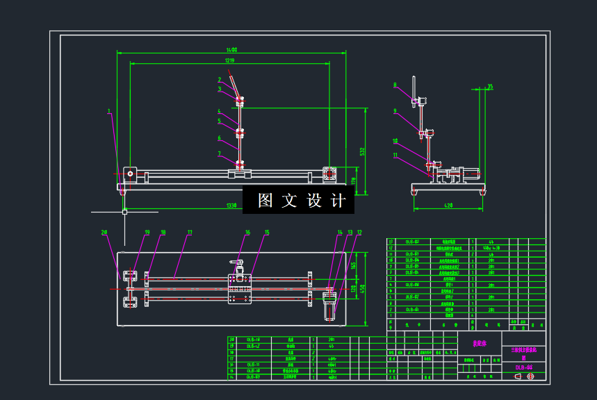 三维为sw2018,CAD2018源文件可进行编辑 本设计对三级级倒立摆系统进行数学建模、控制设计和系统仿真。三级倒立摆系统数学建模中,利用拉格朗日方程来建立倒立摆运动学方程,在进行线性化之后得到系统理想状态的数学方程。控制设计是采用的线性最优控制,设计时使在无限时间上的系统的性能泛函取最小值,而得到最优反馈系数向量K,实现最优控制。在系统仿真中,使用Matlab控制系统设计工具箱中的专用函数计算系统特征值和最优反馈系数K,并进行系统仿真,得到系统的响应曲线