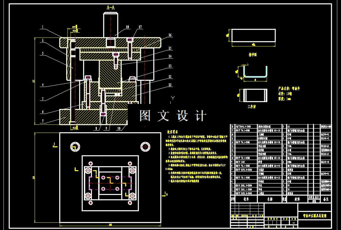 对弯曲零件的冲压加工工艺及冲压模具结构设计进行了详细的论述分析,实现了一个工艺分析、参数设计弯曲工艺分析选择,通过工艺对比模具结构设计的过程,获得一种高效稳定降低成功又可以高速的模具技术,用需要的方块料,然后设计一个单工序模具,就可以满足生产了,这样本弯曲零件的料利用率100%。非常节约成本,设计包括了三维模型,二维装配图及其零件图 文字说明