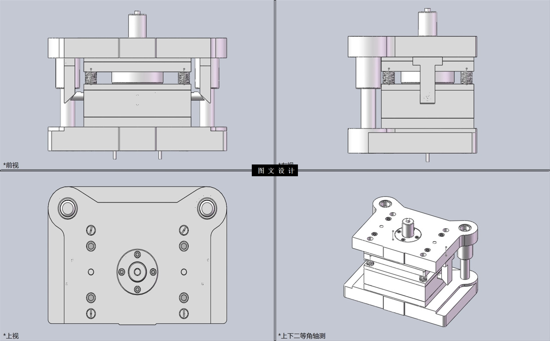 本论文设计是对圆筒罩壳进冲压复合模设计,通过对制件的材料,结构,尺寸精度分析。本制件选用材料08钢。圆筒罩壳总体上下左右对称,厚度为1.5mm, 圆筒罩壳侧面有2个圆孔,对称分布。圆筒罩壳上的拉深外形直径为Φ102mm。正常的冲压方案一般都是侧孔和拉深是分开进行的, 因为拉深过程中板料容易移动,冲孔时会导柱孔变形,为了提高生产效率,本次模具设计过程中,将拉深和冲侧孔一个模具完成,采用斜楔滑块结构,将模具上下运动转化为左右运动,完成冲侧孔。 首先是对圆筒罩壳的工艺分析,再确定工艺方案。然后对零件图的工艺设计,计算材料的利用率以及冲裁板料及条料的利用率。再进行各工艺力的计算和冲裁模工作部分的设计计算,再校核压力机,最后对主要零部件的设计与标准件的选择。为本次圆筒罩壳的cad绘制和成形提供依据。通过上面的设计方案画出模具各零件图和装配图。 本次设计通过对圆筒罩壳的冲压模具设计,加深了我们对所学知识的理解和运用。阐述了模具的设计过程和证明圆筒罩壳在实际设计制造中的可行性。