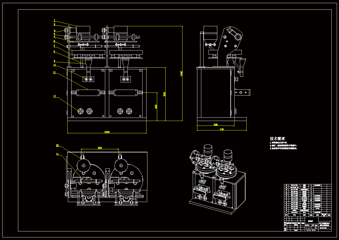 设计要求与生产能力 ①本设计并列工位为2个,最大生产能力每小时完成包装500袋,包装体积可调; ②相对传统包装机,节省空间和占地面积,实现精准化控制,生产速度快,相对人力大幅度提高生产高效率; ③能实现不同工位单独工作、交替工作、同步工作等工作状态; ④采用体积计量方式。