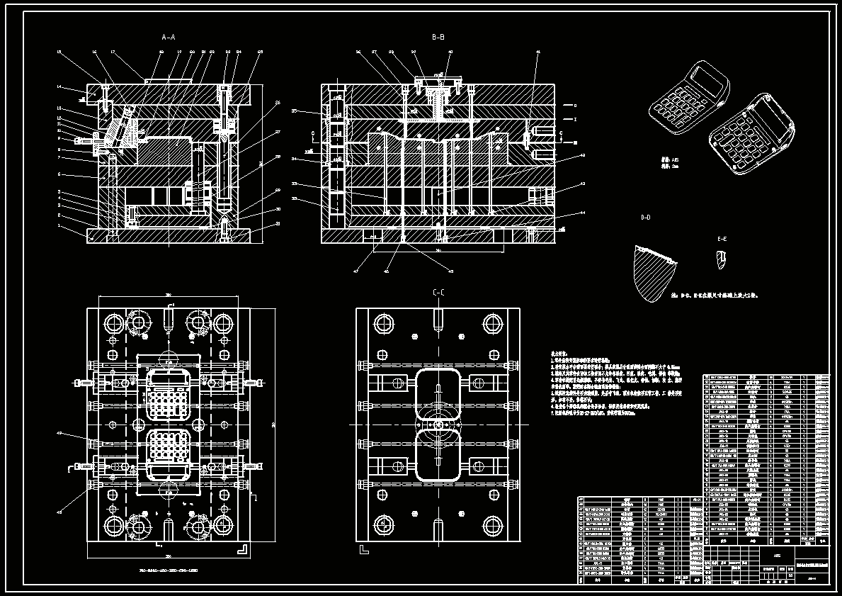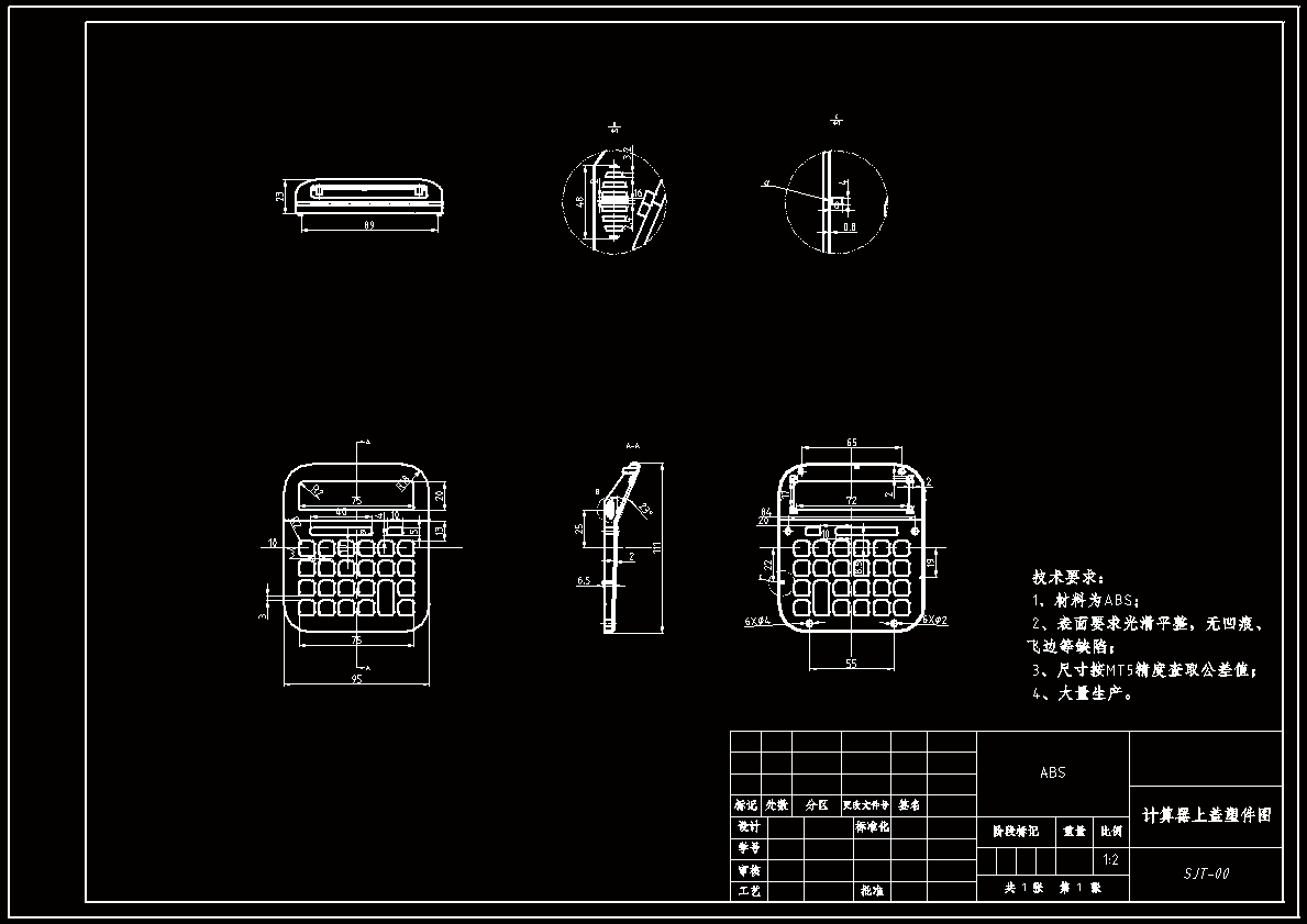 由于在现实生产中,考虑到生产批量,一般都是一副模具,多个型腔。所以,本次设计为一次注塑成型出两个计算器的上盖壳体,这样可以保证资源的合理利用同时也更加符合实际的生产。另外由于计算器上盖壳体的尺寸较大,中间的空格区域太多。本设计采用点浇口三板模设计,采用一模两腔的形式,便于将水口料脱掉。同时为满足制件的精度要求,按照生产经验,每增加一个型腔,塑件的尺寸精度将下降4%,一般当型腔数目大于4时,则生产不出高精度制品。由于计算器外壳制件对尺寸精度的要求较高,所以在便于将水口料脱掉的同时且满足较高的精度要求,故本设计暂定型腔的数量为一模两腔。