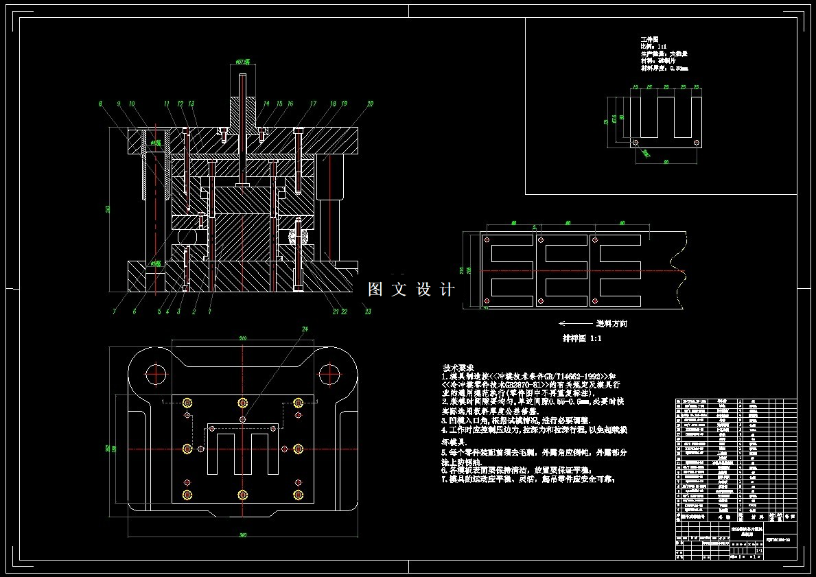 该制件属于铁心片,形状简单且对称。设计了一副复合冲压模具,在传统压力机上一次性完成落料、冲孔,保证了同轴度,也提高了制件的精度和生产效率;避免了传统方法难以解决的手进模具问题,操作方便、安全,实际生产应用广泛。