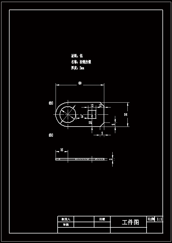 对拉链拉锁的冲孔及其落料模具的设计,通过对零件图形的结构和生产工艺性的分析,决定采取冲孔和落料在同一道工序完成的复合模,同时考虑到倒装式复合模的冲孔废料直接由冲孔凸模从凸凹模内孔推下,无顶件装置,结构简单,操作方便,故选用倒装式复合模具。