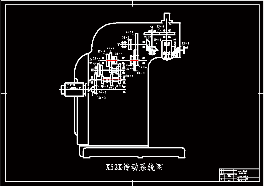 题目是设计x52k立式铣床立铣头设计。其主要讲述的是x52k立式铣床立铣头的总体设计。该铣床主轴是靠齿轮进行传动的。主轴传动系统采用齿轮传动,传动形式采用集中式传动,主轴变速系统采用多联滑移齿轮变速。齿轮传动具有传动效率高,结构紧凑,工作可靠、寿命长,传动比准确等优点,齿轮机构是现代机械中应用最广泛的传动机构,用于传递空间任意两轴或多轴之间的运动和动力。