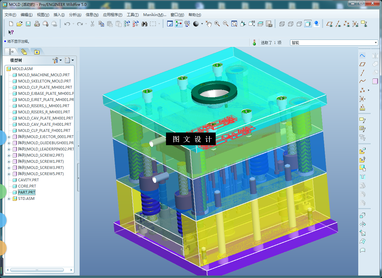 本设计为注塑模的设计,设计分型面选在截面最大处,塑件成型后利用推杆将成型制品从动模上推出,回程时利用复位杆复位。 设计中需要对塑件的尺寸进行计算,确定尺寸精度,然后进行注射机的选取。对注射机参数进行校核,包括模具闭合厚度、模具安装尺寸、模具开模行程、注射机的锁模力等。各个参数都满足要求后才能确定注射机的型号。 在设计过程中,为了更清楚的表达模具的内部结构,因此附有大量的模具结构图和模具局部图,并通过通过CAD和三维软件画出它的二维、三维立体图。