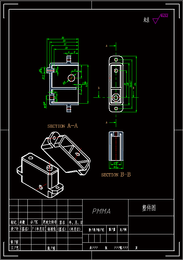 本套模具采用标准模架,其中绝大部分成型零件都采用标准件,这样模具都互换性很好,有利于模具的修整,装配。对于本零件,零件表面比较复杂,所以在模具的设计中,要充分考虑到各个成型零件的装配问题。