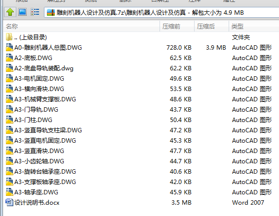 本文主要对雕刻机器人进行设计,包括背景与现状的调查分析,雕刻机器人的工作方案设计,机械结构设计,运动仿真及动力学分析,以及关键零部件的有限元分析。