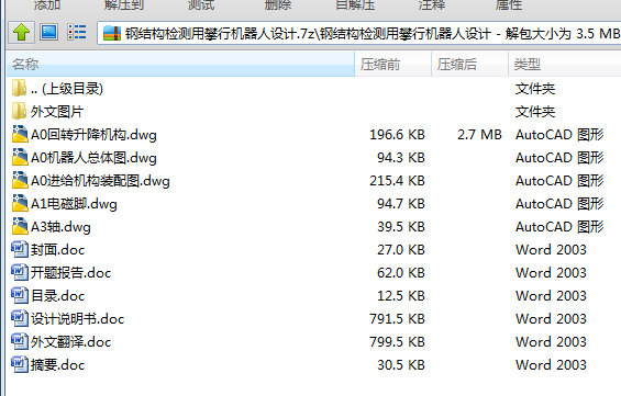 通过以上各部分的工作,得出了结构简单、实用性高、能够实现钢结构的检测用机器人的整体设计方案和执行部件的结构设计,并且对其他类型机器人系统的设计也有一定的借鉴价值。