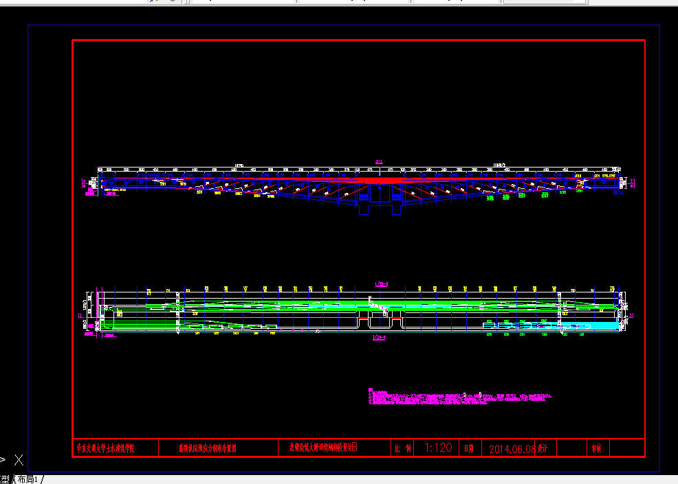 本设计采用Dr.Bridge分析软件进行结构内力分析计算并结合AutoCAD2004和Excel进行辅助设计。全桥上部结构共分为70个单元,定义了29个施工阶段。