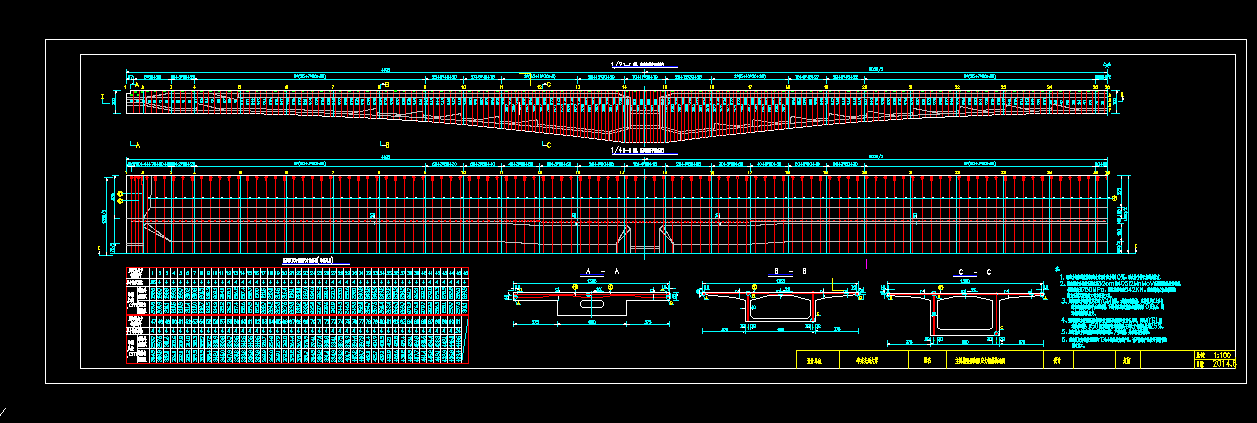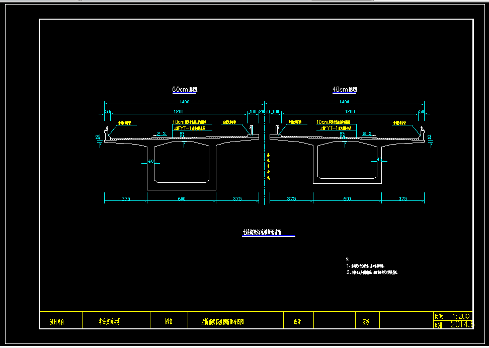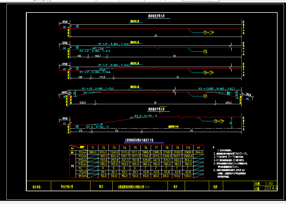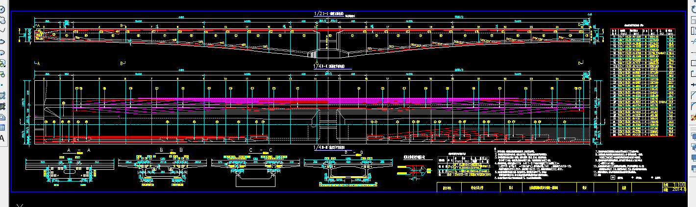 连续梁桥是工程上广泛使用的一种桥型,它不但具有可靠的强刚度及抗裂性,而且具有行车舒适平稳,养护工作量小,设计及施经验成熟的特点。设计一座梁桥必须从桥跨布设,尺寸拟定,钢束布以及施工方法等方面综合考虑,还要充分考虑设计参数和环影响。本次设计的题目是江西省某高速公路大桥。设计采用预应混凝土箱型梁桥,跨径布置为(45+80+45)m,双向六车道;主梁变截面单箱单室箱型梁,梁高采用变高度梁,按二次抛物线变化,跨中梁高为2.0m,支点梁高为4.5m;采用悬臂现浇施工。该设计首先进行恒载、活载及次内力的计算,在此基础上进行荷载组合绘制弯矩和剪力包络图;其次根据短期效应组合配置预应力钢筋,并进行预应力损失的计算;最后,对该连续梁桥进行验算,是否满足设计要求。具体包括以下几个部分:桥梁结构布置;截面结构各部分尺寸拟定;主梁作用效应计算;预应力钢束的估算及布置;预应力损失及有效预应力计算;截面强度验算;抗裂验算;持久状况构件的应力验算;挠度验算。