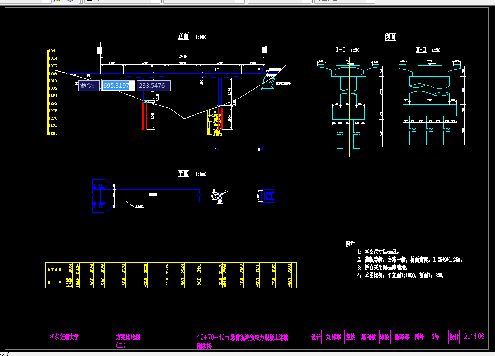 关键字:预应力混凝土连续梁桥; 变截面; 桥梁博士; CAD; 验算