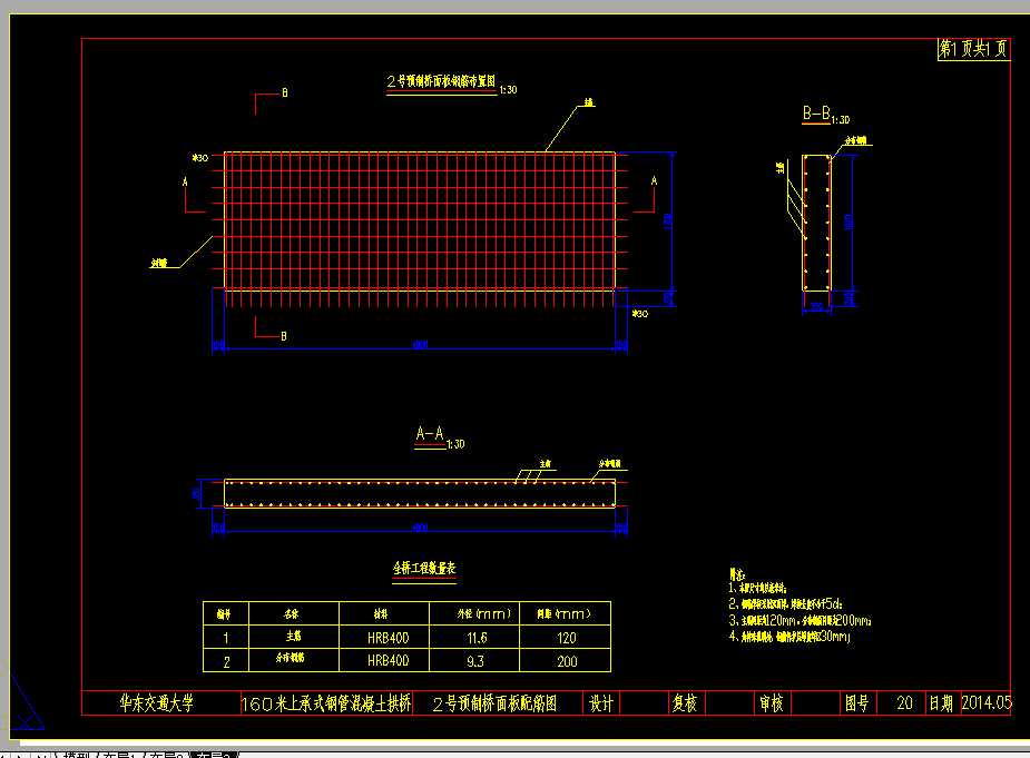(3)桥面板采用预制面板,并按单向板进行内力计算,进行配筋验算。