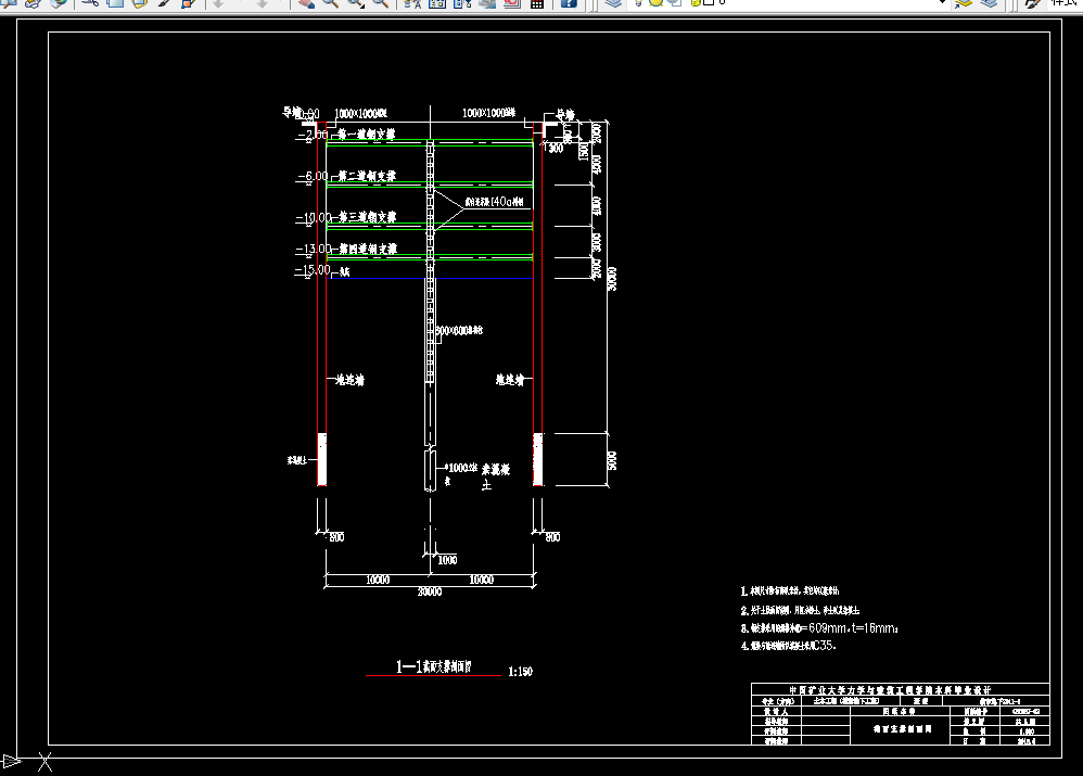 本毕业设计分为四部分,第一部分为对上海长寿路地铁站基坑维护结构的设计,根据该站点的基坑工程地质、水文地质条件和周围环境条件下,通过施工方案的选择比较,选取明挖法施工,采用地下连续墙作为支护结构,混凝土和钢支撑混合支撑结构,并对其进行相应的强度、内力变形、承载力、抗渗、抗隆起、抗滑移、支撑内力变形验算;第二部分为上海地铁长寿路站基坑施工组织设计,根据工程设计计算书,合理编制施工组织,对施工前准备,施工具体工法及进度计划作出了具体安排,编写了质量监控、安全生产、经济环保举措;第三部分是专题部分,基于渗流场-应力场耦合作用下,结合基坑变形分析理论,总结渗流破坏理论,通过ABAQUS软件对设计部分基坑进行渗流-应力耦合验算;最后为翻译部分,文章为《Bank undercutting and tension failure by groundwater seepage: predicting failure mechanisms》。