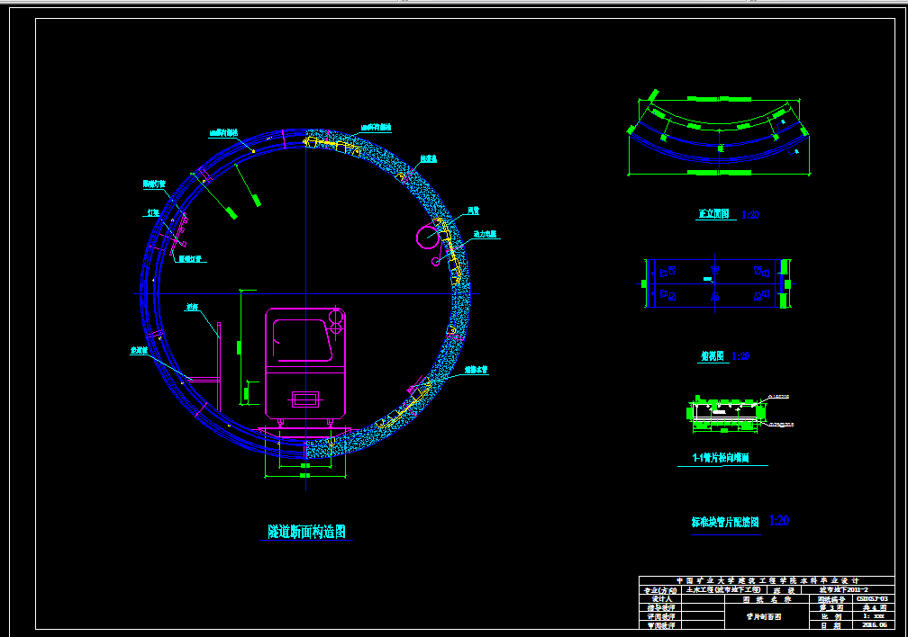 在第一部分区间隧道结构设计中,根据隧道穿越地层的工程地质、水文地质条件和周边环境情况,通过施工方案的比选,确定采用盾构法施工,隧道衬砌结构采用复合衬砌,并对其进行相应的强度和抗浮验算。