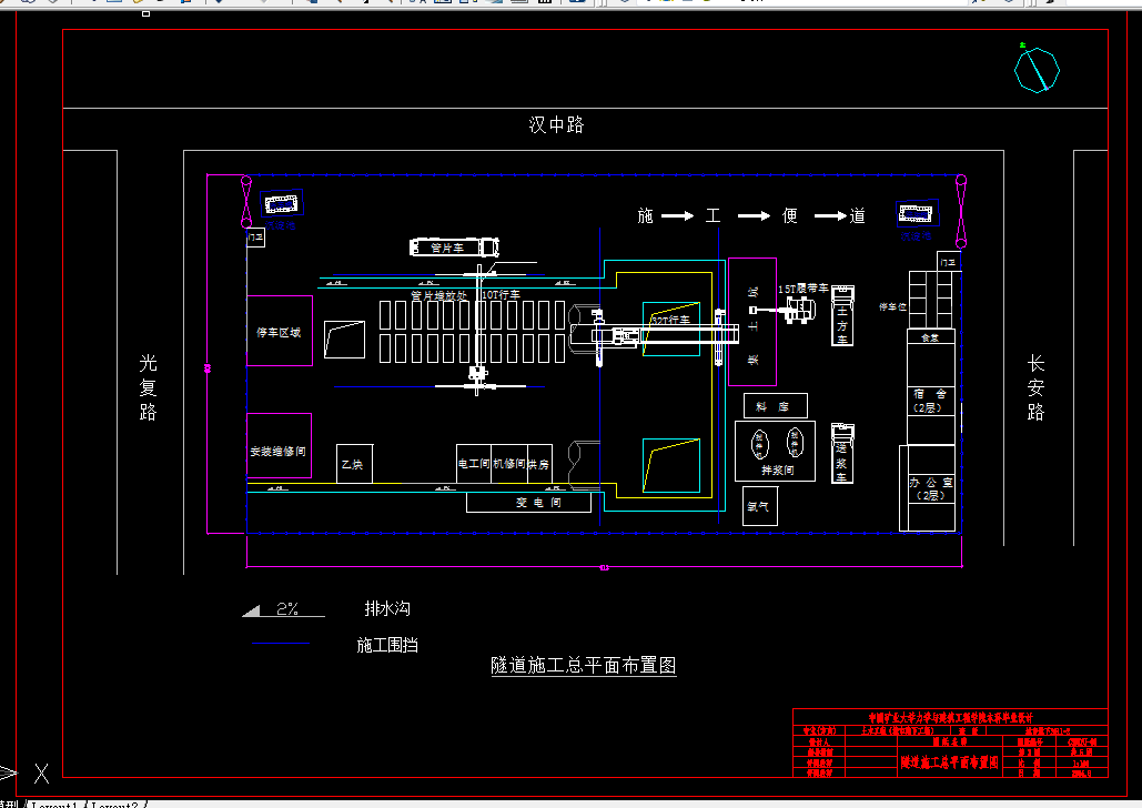 第二部分是区间隧道施工组织设计,根据隧道施工方法和隧道周边的环境情况,对施工前准备工作,施工场地布置,隧道开挖与衬砌结构施工等进行设计,并编制了工程进度计划,编写了相应的质量、安全、环境保护等措施。