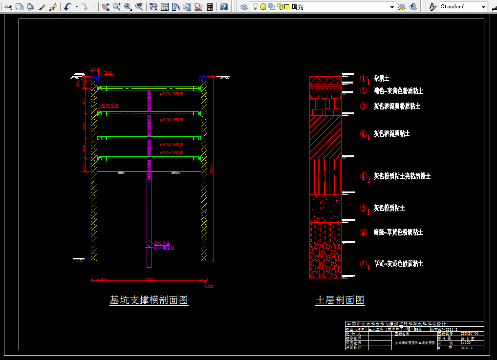 第二部分是基坑施工组织设计,根据基坑施工方案和基坑周边的环境情况,对施工前期准备工作,施工场地布置,基坑开挖与围护结构施工方法等进行了设计,并编制了工程进度计划以及相应的质量、安全、环境保护等措施。